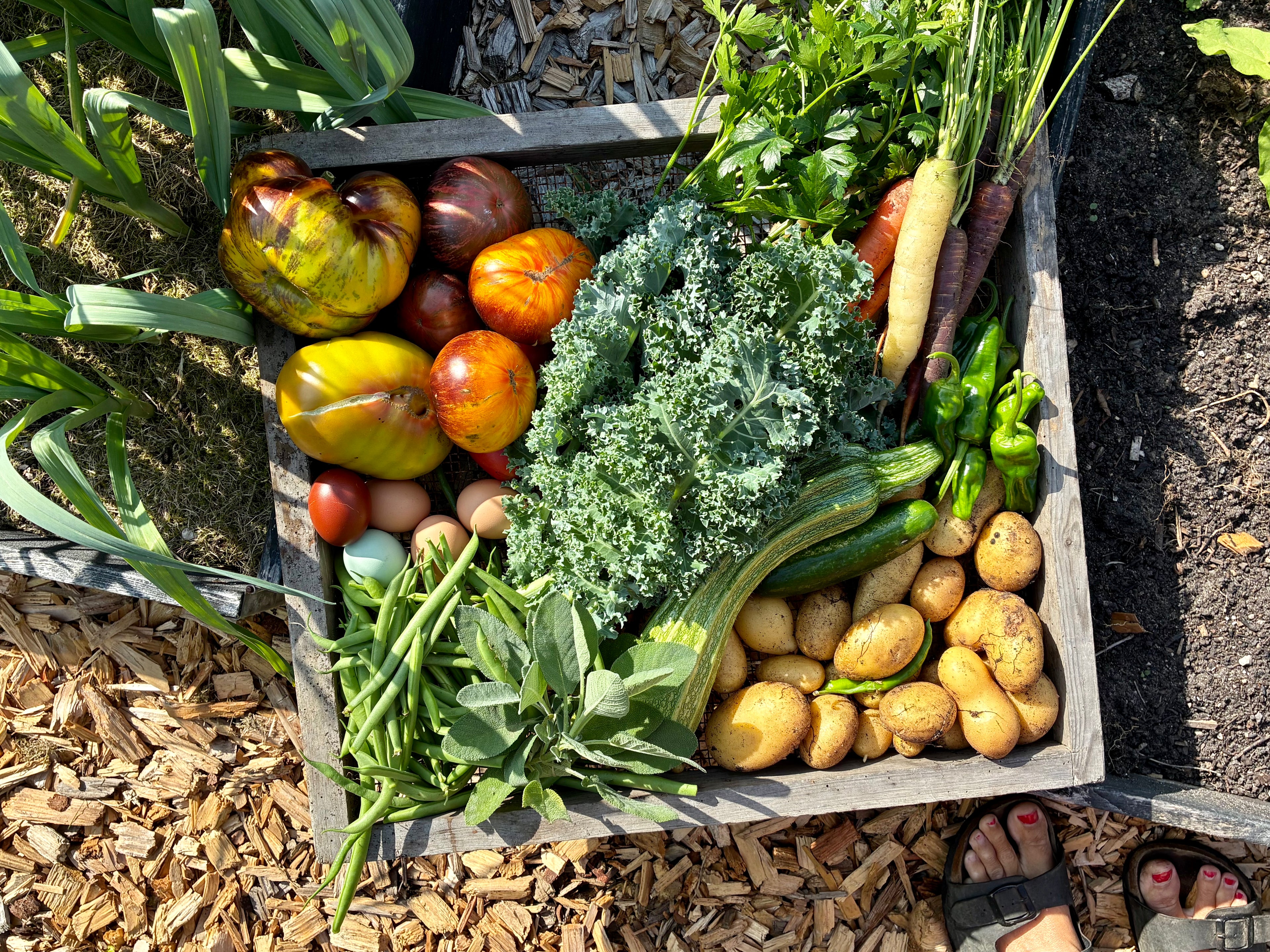 Jeg er vokset op på landet, men satte som barn helst ikke mine ben i min mors køkkenhave, hvis jeg kunne slippe for det. Interessen for at dyrke min egen mad blev vakt til live, da jeg fik min egen køkkenhave i 2007. I starten smed jeg nogle frø i jorden og håbede på det bedste, men i takt med at mine to drenge blev større, blev der tid til at afprøve forskellige dyrkningsmetoder. I dag dyrker jeg efter “no dig”-konceptet, hvor man graver mindst muligt i køkkenhaven for at bevare mikrolivet og tilføjer næring til jorden i form af organisk materiale - kompost, blade, græsafklip og så videre. Gødning finder jeg i hønsehuset og på den nærtliggende rideskole.